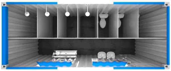 Nossos containers são projetados pensando no bem-estar dos usuários, com divisórias internas, áreas de circulação amplas e boa ventilação.