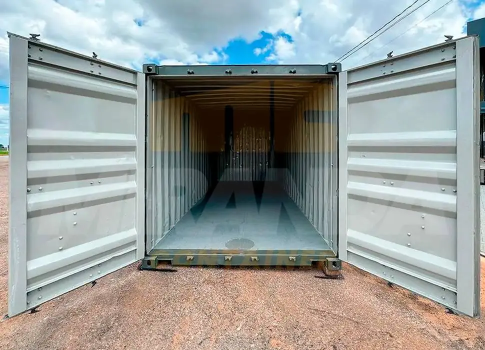 Possui portas marítimas funcionais, já o seu piso é totalmente feito por compensado naval. O container também conta com suporte para 2 cadeados, com chapa 20 de aço de carbono, dentro do container conta com gancho superior para ajudar no carregamento, ganchos inferiores para auxiliar no içamento.